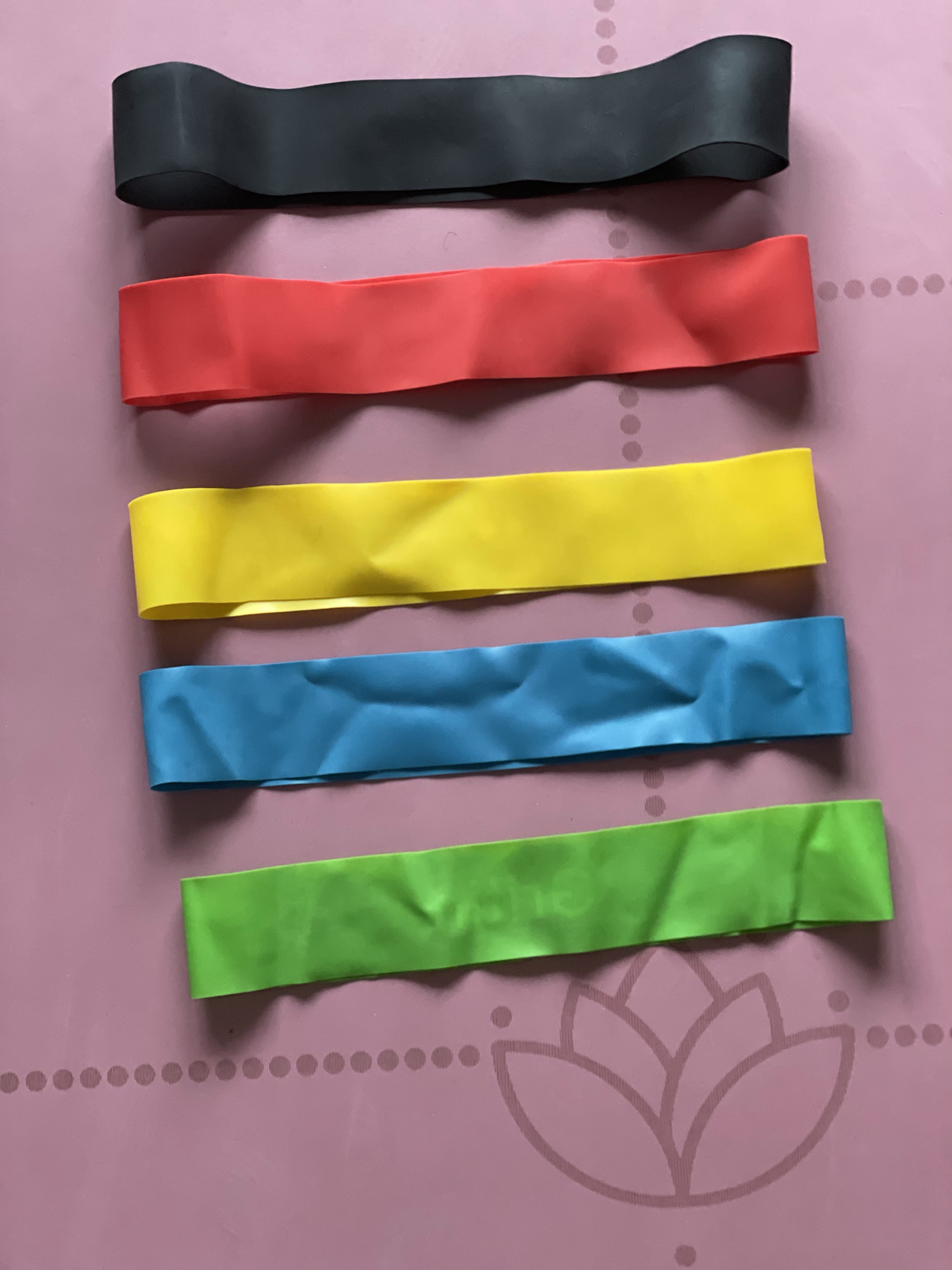Resistenzbänder können für den ganzen Körper (Arme, Rumpf, Beine, Po) eingesetzt werden, um die Trainingseinheiten zu intensivieren und mehr Kraft aufbauen zu können. Die Bänder kommen meist in mehreren Widerstandsstufen von schwer bis leicht. Somit könnt ihr euch langsam steigern. Die Bänder sind in unterschiedlichen Materialien erhältlich. Auf der rechten Seite seht ihr die ganz klassischen, gummiartigen und somit sehr dehnbaren Bänder, welche besonders gut für den Oberkörper eingesetzt werden können. Allerdings empfehle ich für den Unterkörper (besonders bei Kniebeugen oder Ausfallschritten) die Resistenzbänder auf der linken Seite mit einem angenehmen Stoffüberzug, welche nicht in die Oberschenkel einschneiden oder sich verdrehen.